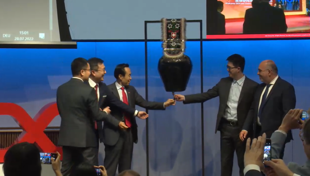 728日晚9點(瑞士時間7月28日下午3點),瑞士證券交易所正式啟動“中瑞股市互通”的 GDR 部分,作為首批中國公司之一,杉杉股份GDR正式登陸瑞交所。中國駐瑞士大使王世廷、瑞交所Tom Zeeb先生(Head Exchanges)出席儀式,杉杉股份董事長鄭永剛等中國公司代表出席儀式并發(fā)言。同一時間,杉杉科技董事長李鳳鳳在上海證券交易所同步敲鑼。
