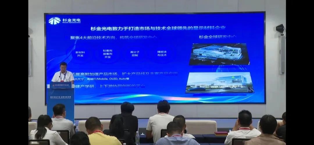 在9月8號上午舉行的“新型顯示產(chǎn)業(yè)對接會”平行論壇中,杉金光電副總裁、杉金綿陽總經(jīng)理汪寧受邀發(fā)表題為《協(xié)同創(chuàng)新,助力顯示產(chǎn)業(yè)高質(zhì)量發(fā)展》的演講。