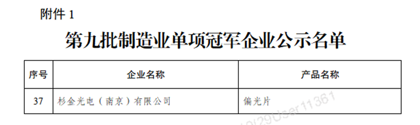近日,江蘇省工業(yè)和信息化廳公示了工信部第九批國家制造業(yè)單項冠軍企業(yè)名單,杉金光電(南京)有限公司憑借核心產(chǎn)品偏光片,成功通過認(rèn)定并榮獲國家級制造業(yè)單項冠軍稱號,刷新了企業(yè)在高端顯示材料領(lǐng)域的發(fā)展高度,標(biāo)志著公司在顯示偏光片領(lǐng)域綜合實力獲得國家級權(quán)威認(rèn)可。